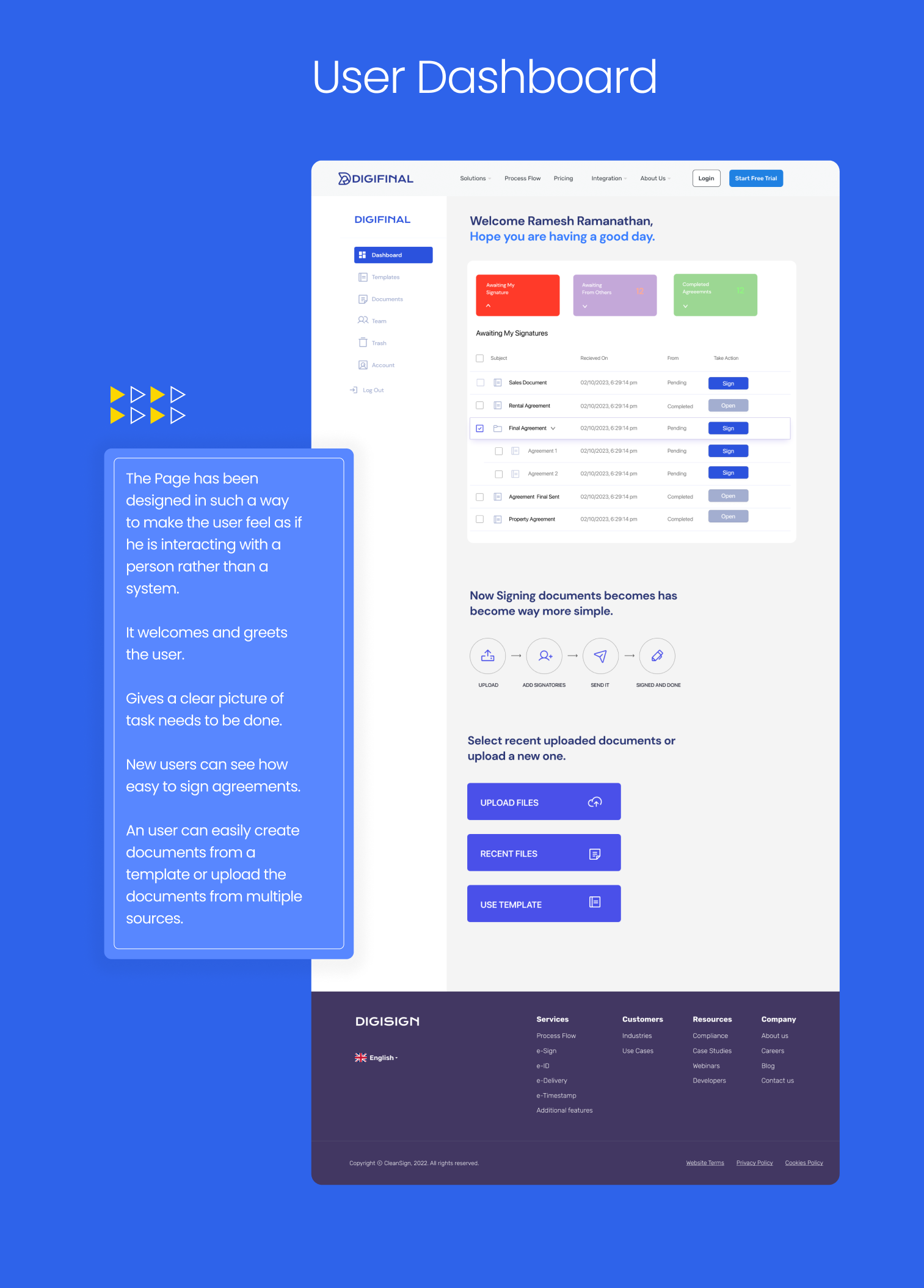 To Create a Digital Signature website, which is clutterfree and user friendly.